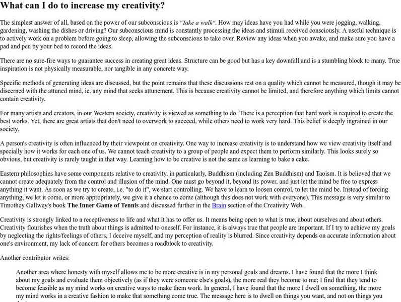A simple site that gives concise definitions to critical thinking and creative thinking. Included are links to more resources about these thinking processes.