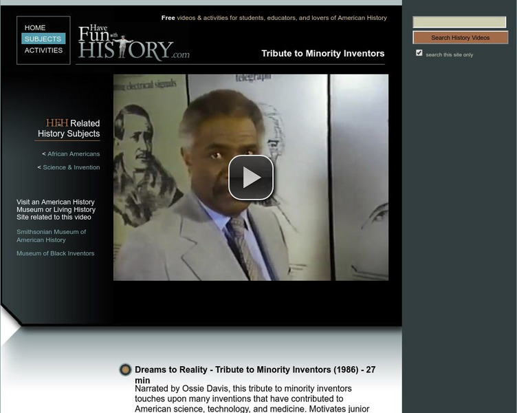 Narrated by Ossie Davis, this tribute to minority inventors touches upon many inventions that have contributed to American science, technology, and medicine. Motivates junior and senior high school students (minority) to take scientific...