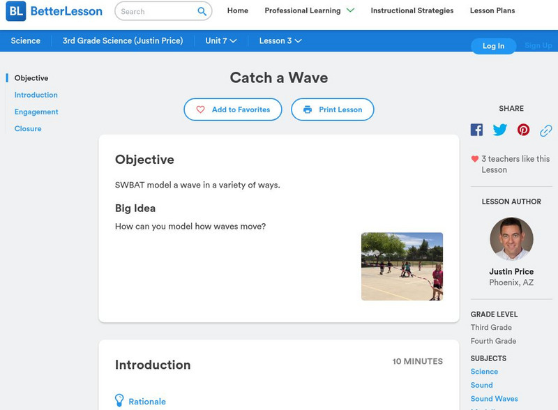 This lesson encourages students to model a wave in a variety of ways using ropes and rubber bands. Resources included are videos of the lesson in action, a student worksheet, and examples of student work.