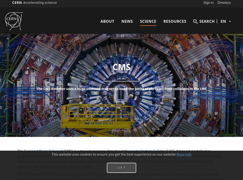 The Compact Muon Solenoid Experiment (CMS), an LHC experiment, detects muons, electrons and photons, provides momentum measurements, and, like ATLAS, is responsible for detecting the Higgs boson. This CERN website offers news about CMS,...