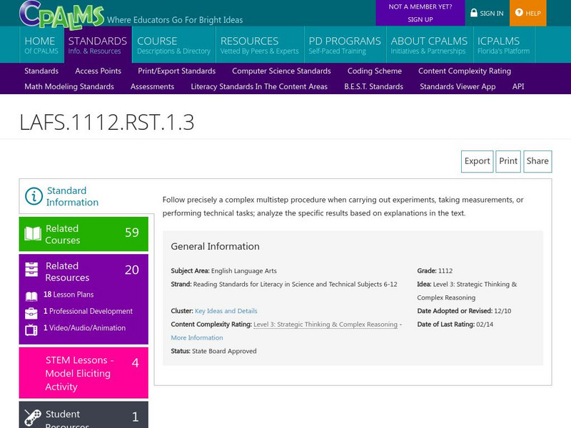 Cpalms: Lafs.1112.rst.1.3: Follow Precisely a Complex Multistep Procedure