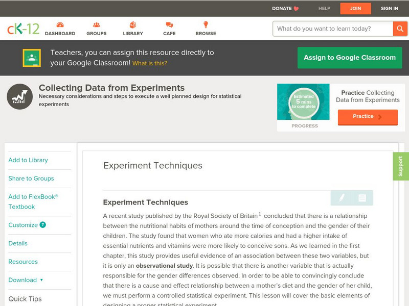 Ck 12: Collecting Data From Experiments: Experiment Techniques
