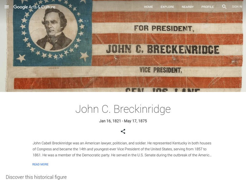 This visual website from Google Cultural Institute shares background information and photos about John C. Breckinridge.