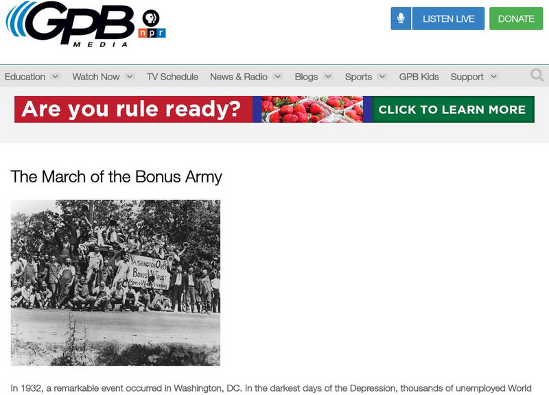 A short description of the Bonus March of 1932, when thousands of World War I veterans tried to claim their war bonus to help them during the Great Depression and were forcibly suppressed by the U.S. Army. Includes many primary source...