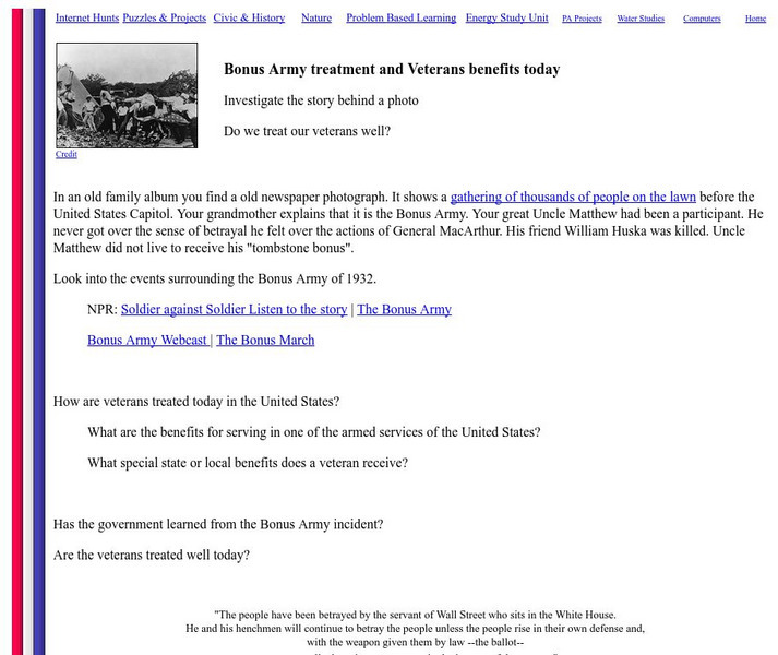 Find out what the Bonus Army of 1932 was all about and how it relates to the way veterans are treated today in the United States.
