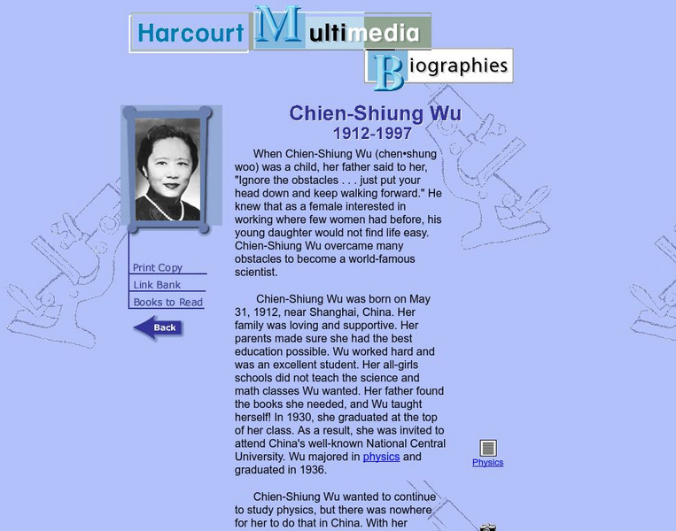 A great resource on one of the scientists that worked on the Manhattan Project, Chien-Shiung Wu. Read about some of her contributions to physics, read a brief overview of the Manhattan Project, and learn about the law of Parity, an idea...