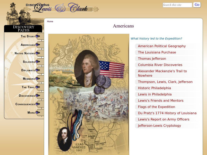 This section of the larger Discovering Lewis & Clark website explores in detail America in 1803 and delves into the Louisiana Purchase, Thomas Jefferson, and political geography among other topics.