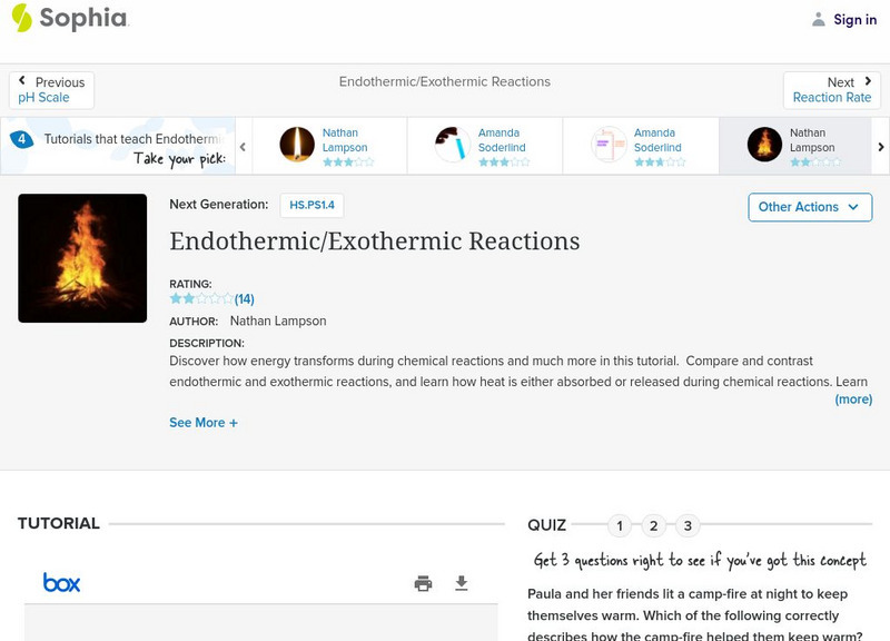 Sophia: Endothermic/exothermic Reactions: Lesson 4
