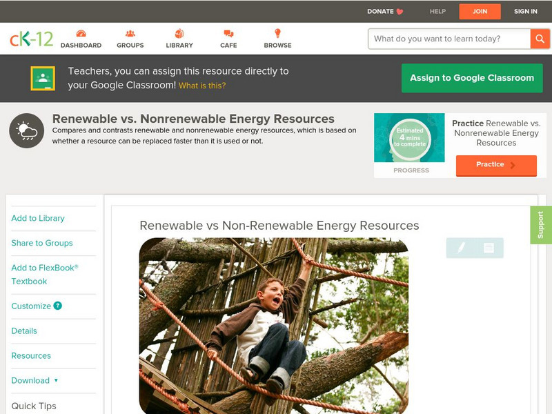 Ck 12: Earth Science: Renewable vs Non Renewable Energy Resources