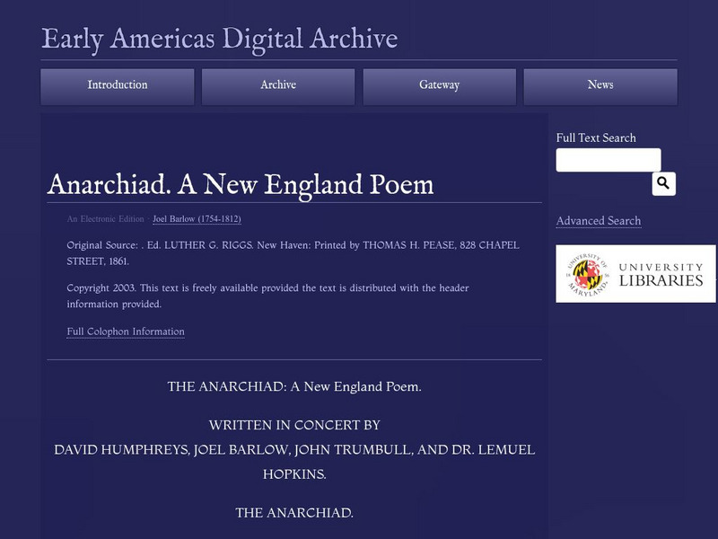 Early Americas Digital Archive: Anarchaid. A New England Poem