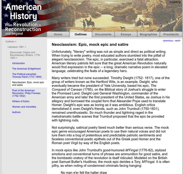 American History: Outlines: Neoclassism: Epic, Mock Epic and Satire