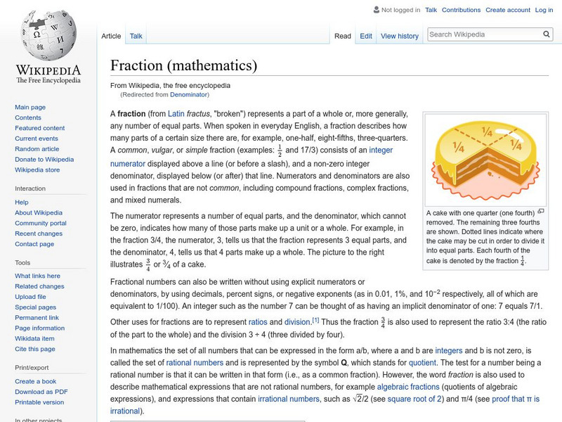 This one page website provides a basic explanation of a fraction and its denominator and numerator.