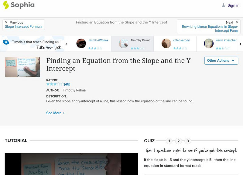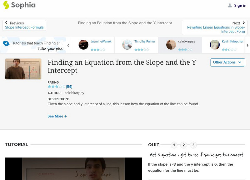 Sophia: Finding an Equation From the Slope and the Y Intercept: Lesson 3