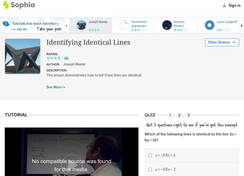 Use equations to determine if two lines are identical. Assess learning with a quiz.
