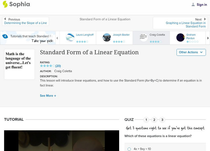 The video lesson reviews how to use the standard form to determine if an equation is linear. Examples are included.