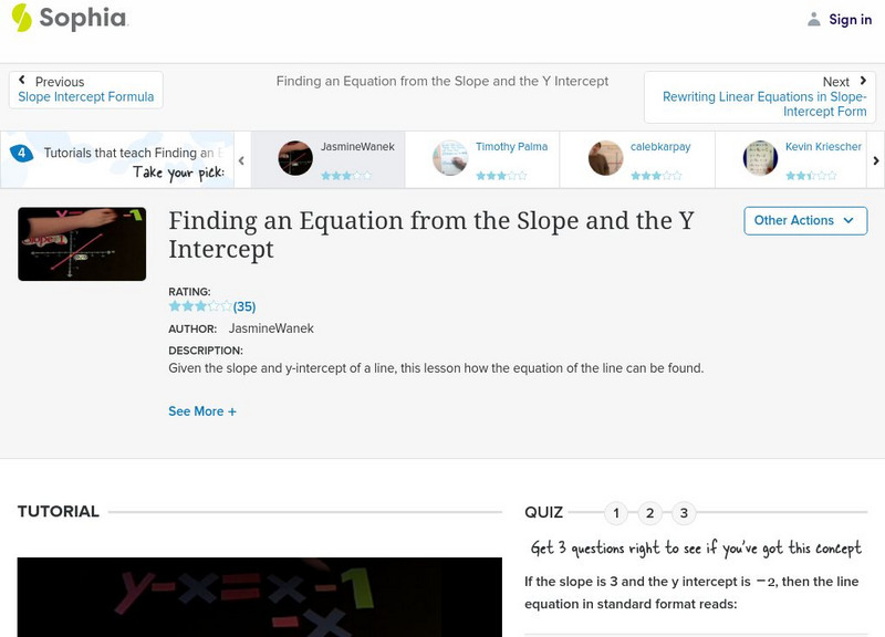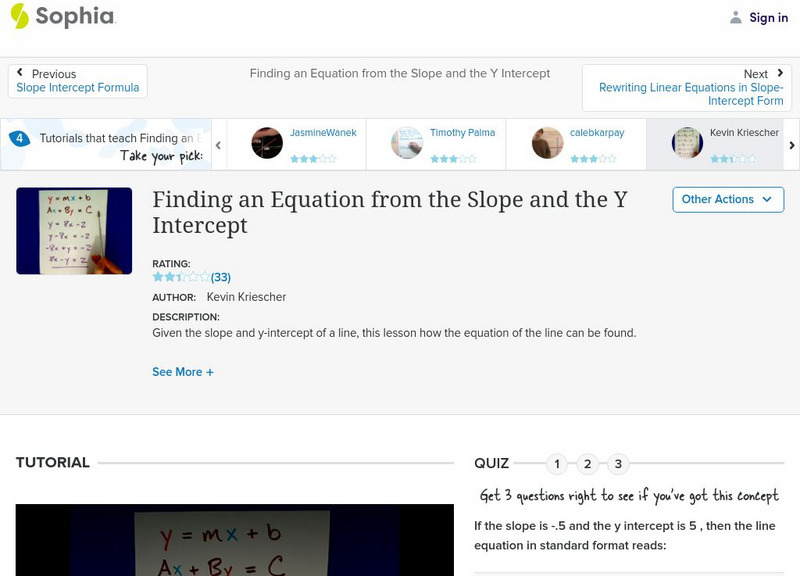 Sophia: Finding an Equation From the Slope and the Y Intercept: Lesson 1