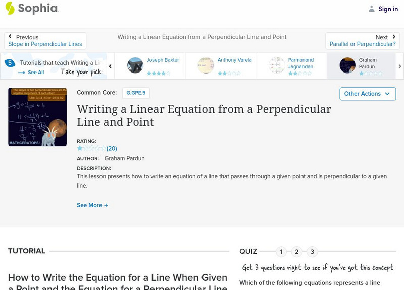 Sophia: Writing a Linear Equation From a Perpendicular Line and Point