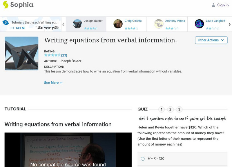 This lesson demonstrates how to write an equation from verbal information without variables.