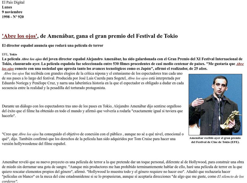 Abre Los Ojos', De Amenabar, Gana El Gran Premio Del Festival De Tokio
