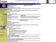 High schoolers are asked how does odors move around without energy? They relate concentration gradients, diffusion, and equilbrium and predict water movement into and out of cells. Students are shown a demonstration where the teacher...