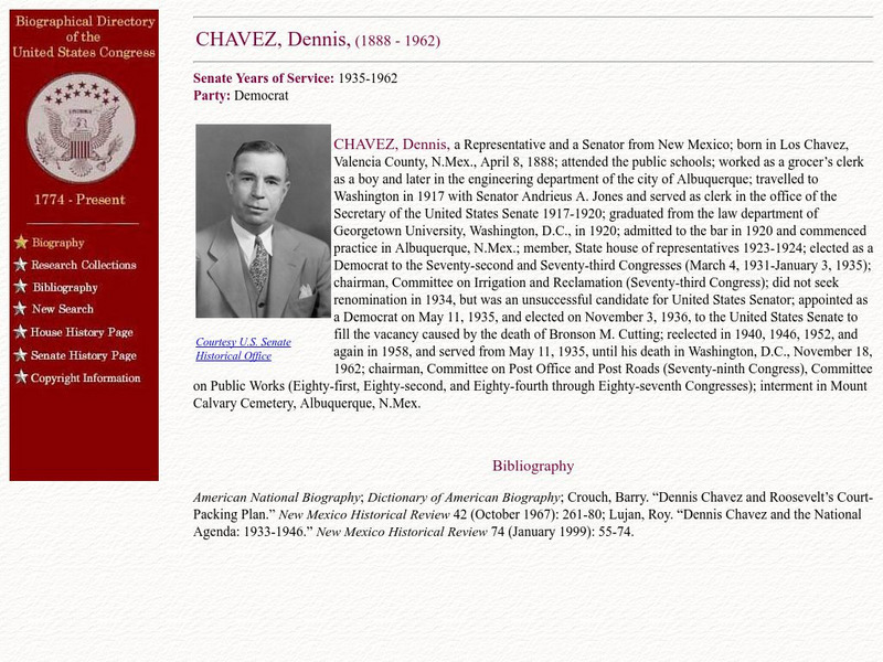 Loc: Biographical Directory of the u.s. Congress: Dennis Chavez (1888 1962)