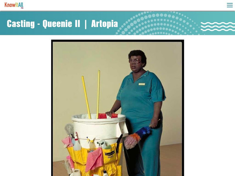 Resource about the sculpture Queenie II by Duane Hanson. Includes an image of the sculpture, a suggested art activity in text and audio, links for more information about the sculpture and artist as well as a link to "Do More", a place to...