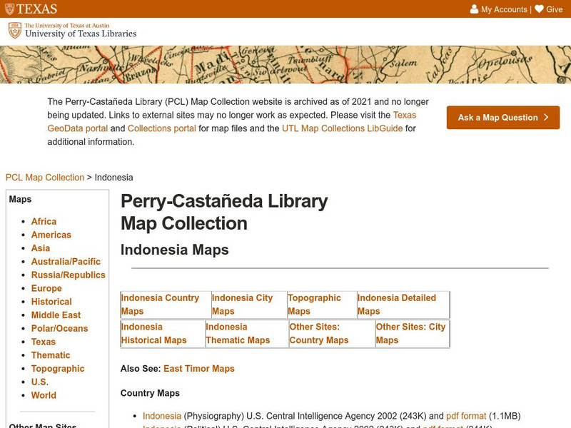 The Perry-Castaneda Library at the University of Texas provides an outstanding collection of maps of the country of Indonesia. PDFs (require Adobe Reader).