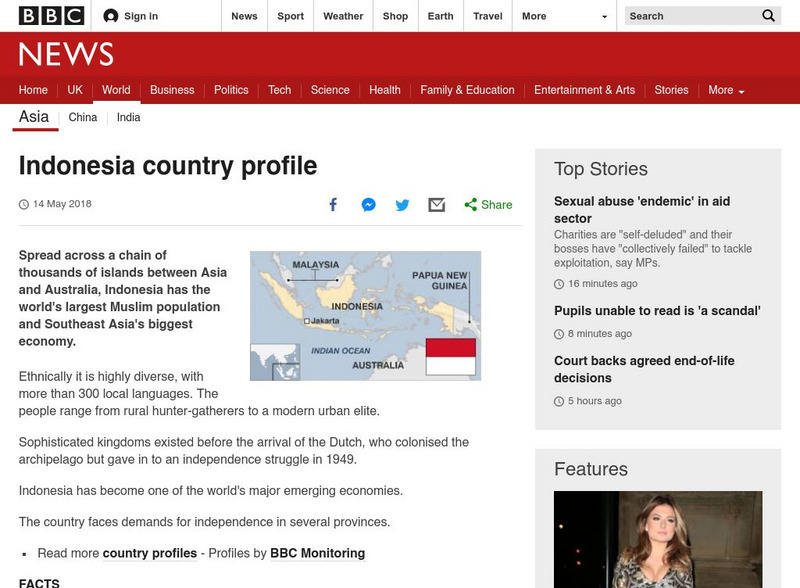 The BBC provides a general overview of the country of Indonesia. Content includes a focus on Indonesian recent history, leaders and media. There is also a timeline of key events in Indonesian history.