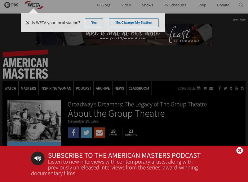 Information about the Group Theatre of the 1930s provided by PBS's American Masters series. Also includes links to related information and a short video of some of the actors discussing one of their most successful play's opening night.