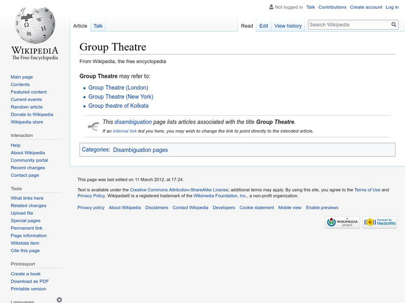 Contains four paragraphs of information about the influential Group Theatre of New York in the 1930s. Also contains links to more information about people who influenced or were associated with it including Konstantin Stanislavski, Lee...