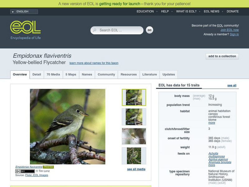Encyclopedia of Life: Yellow Bellied Flycatcher