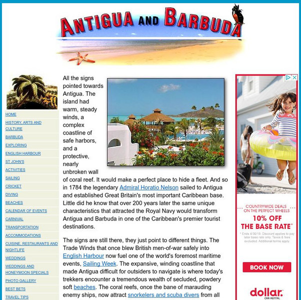 "The Official Homepage of the Antigua and Barbuda Department of Tourism". Summarizes details on geography, climate, history, culture, and tourist information.