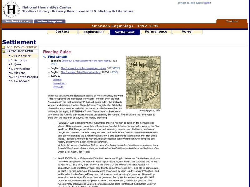National Humanities Center: Toolbox Library: First Arrivals, American Beginnings: 1492 1690