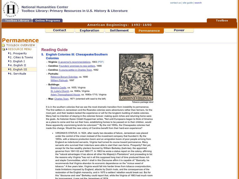 National Humanities Center: Toolbox Library: English I, American Beginnings: 1492 1690