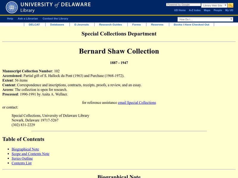 University of Delaware Library: Bernard Shaw Collection