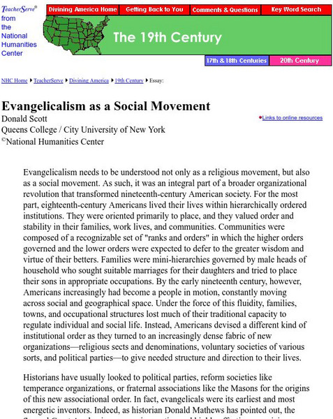 National Humanities Center: Teacher Serve: Evangelicalism as a Social Movement