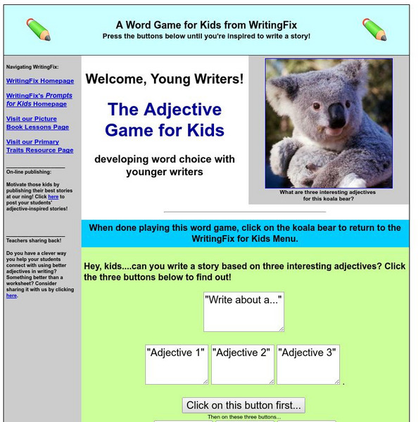 Students use this writing prompt generator to choose a writing topic and three adjectives to use in an original piece.