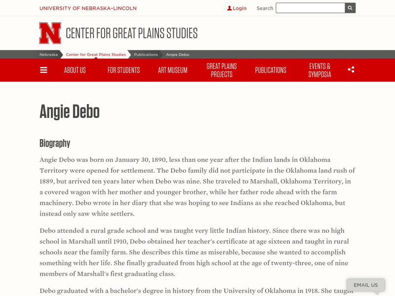 University of Nebraska Lincoln: Center for Great Plains Studies: Angie Debo