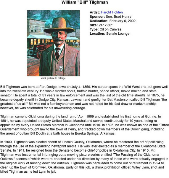 Learn about the political career of Bill Tilgman, a deputy United States marshall, peace officer and state senator