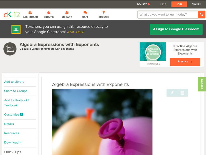 Ck 12: Algebra: Algebra Expressions With Exponents
