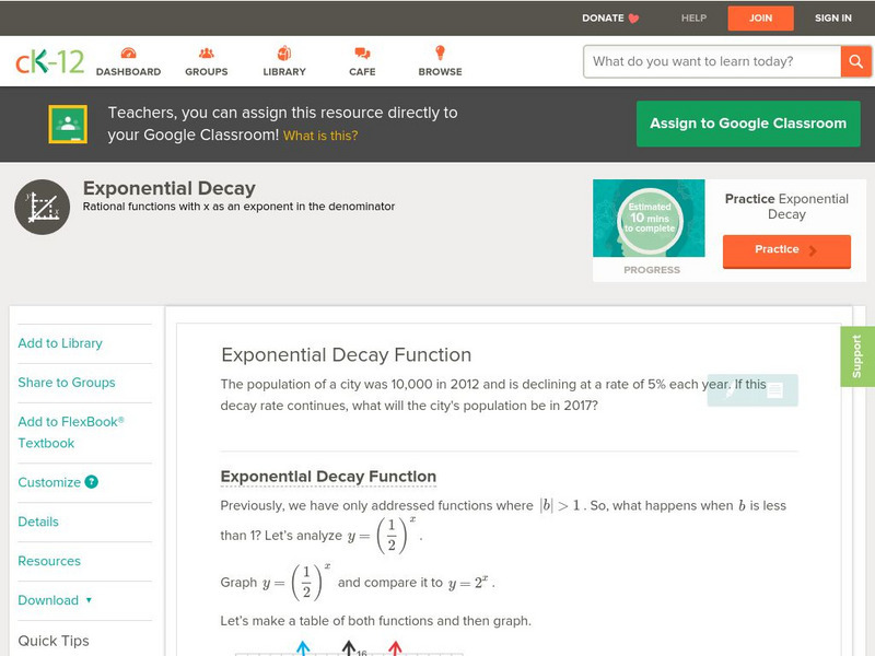 [Free Registration/Login may be required to access all resource tools.] This lesson covers how to analyze and graph exponential decay functions.