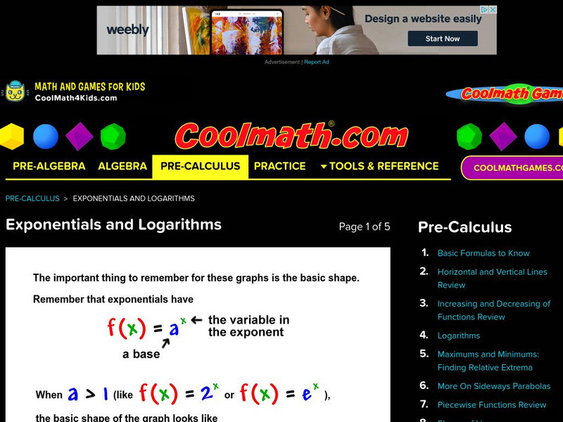 Coolmath: Exponentials and Logarithms
