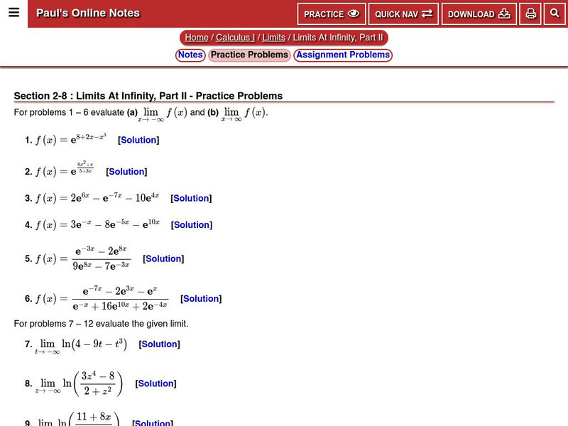 Paul's Online Notes: Limits at Infinity, Part Ii: Practice Problems