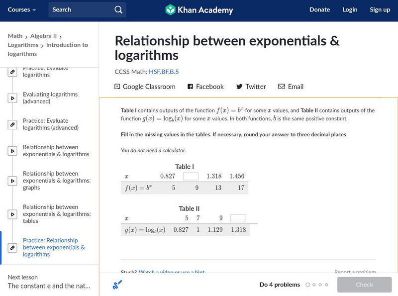 Khan Academy: Algebra Ii: Relationship Between Exponentials & Logarithms