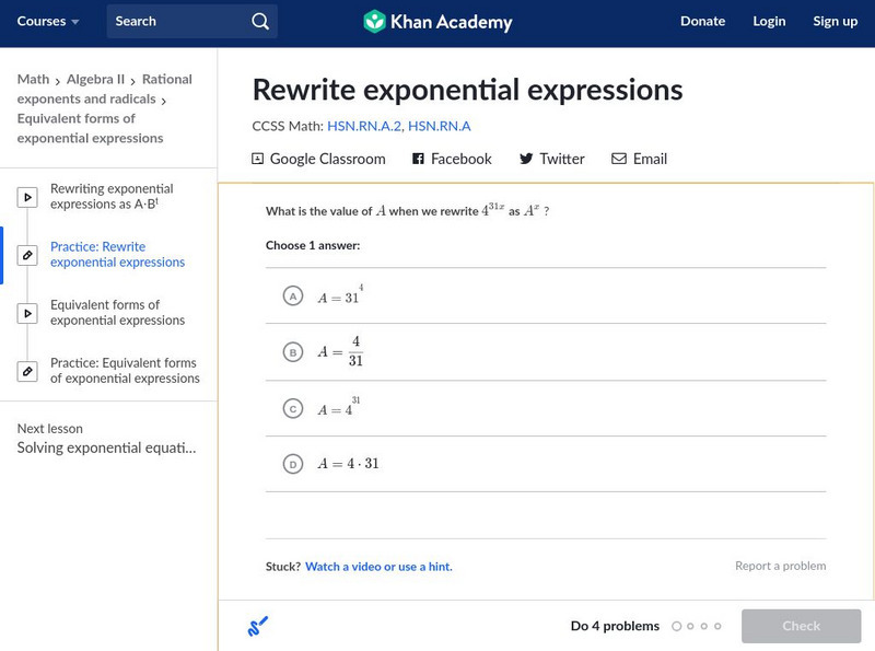 Khan Academy: Equivalent Forms of Exponential Expressions