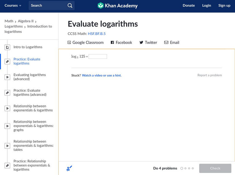 Khan Academy: Algebra Ii: Evaluate Logarithms