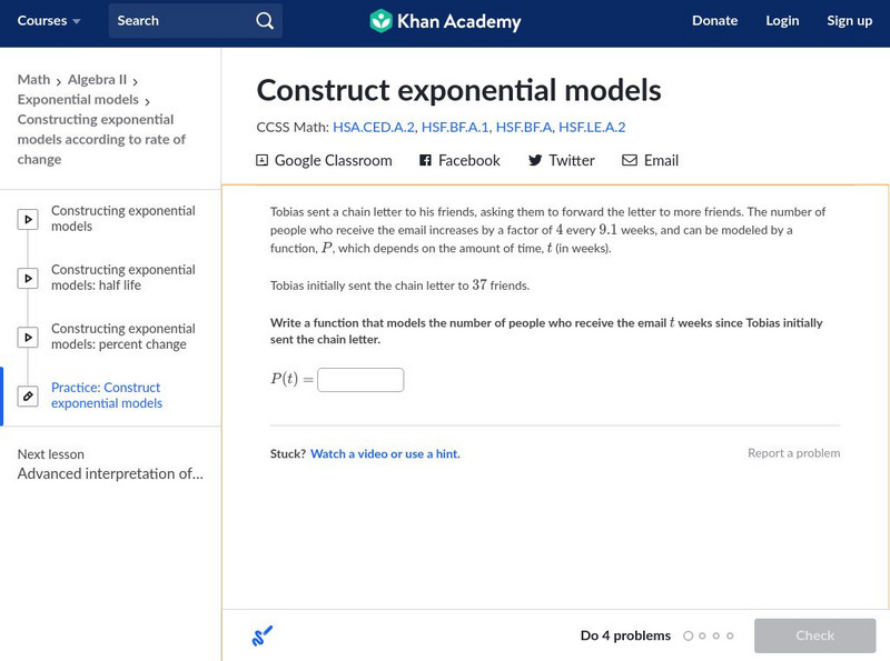 Khan Academy: Construct Exponential Models
