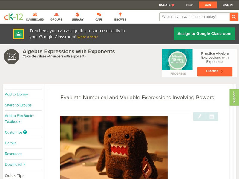 Ck 12: Algebra: Evaluate Numerical, Variable Expressions With Powers