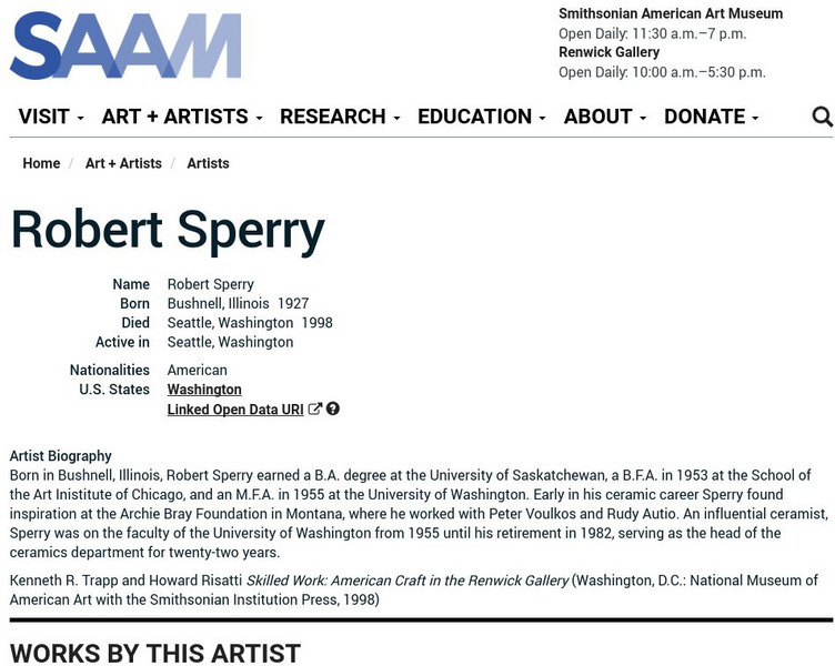 As part of the Smithsonian Art Museum's database of artists, Robert Sperry is described here along with information on his contributions to art through sculpture.