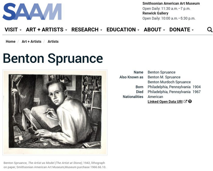 As part of the Smithsonian Art Museum's database of artists, Benton Spruance is described here along with information on his contributions to art through his extensive work with Lithographic prints.